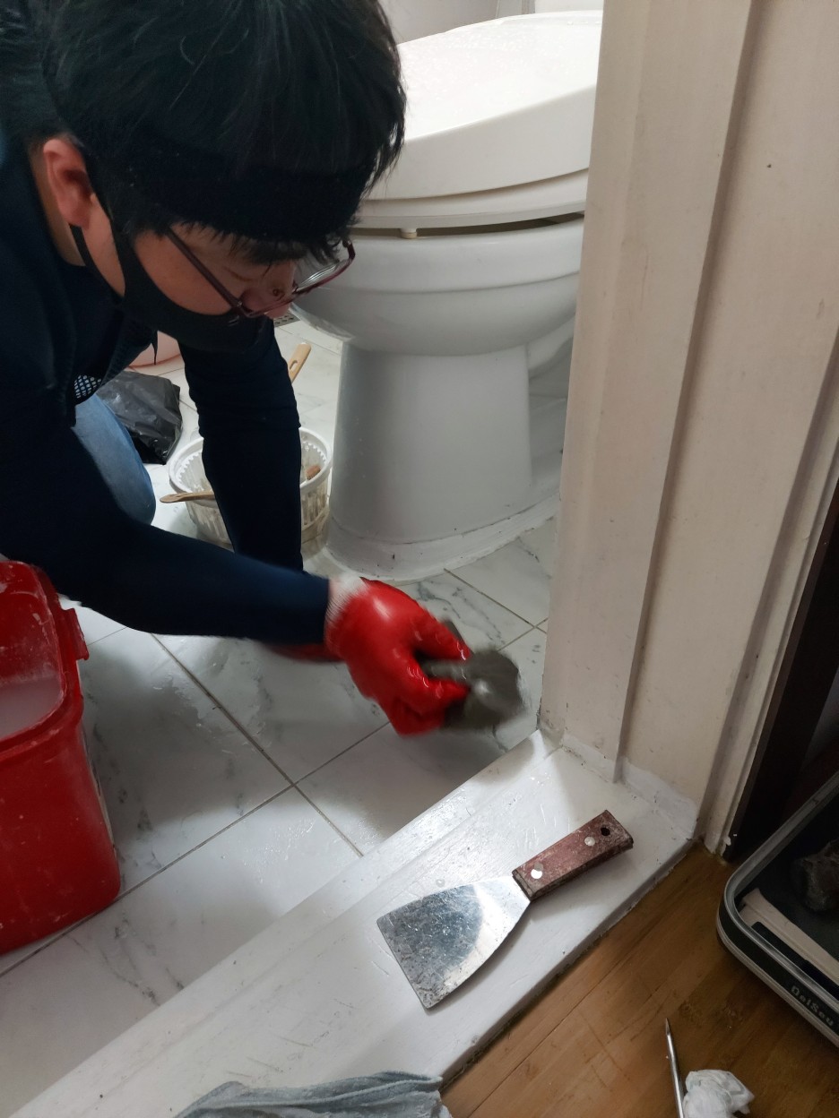 그래서.. 피해 집이 화장실 바로 앞에 누수흔적이 있기때문에 욕실 방수를 의심을 하여,