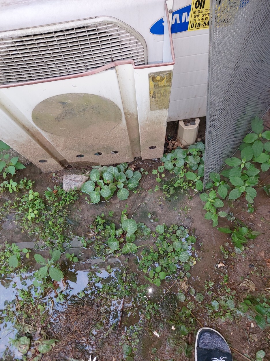 하수구 물이 역류해서 빌라의 화단에도 물이 차 있습니다.