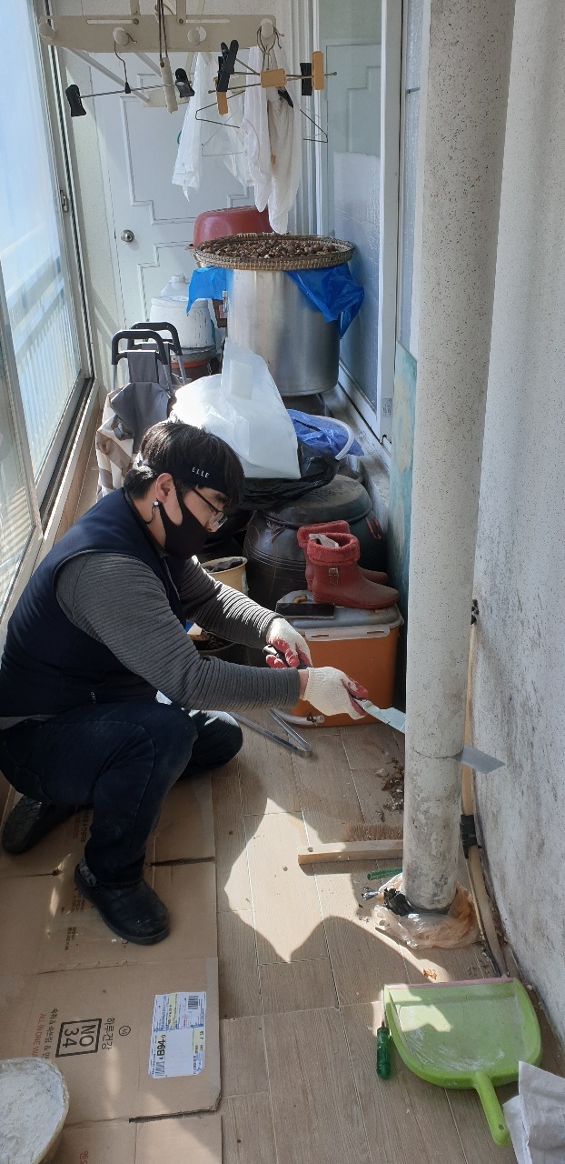 현장에 도착을 해서 윗집, 아랫집 누수상황을 점검하고 작업을 시작합니다.