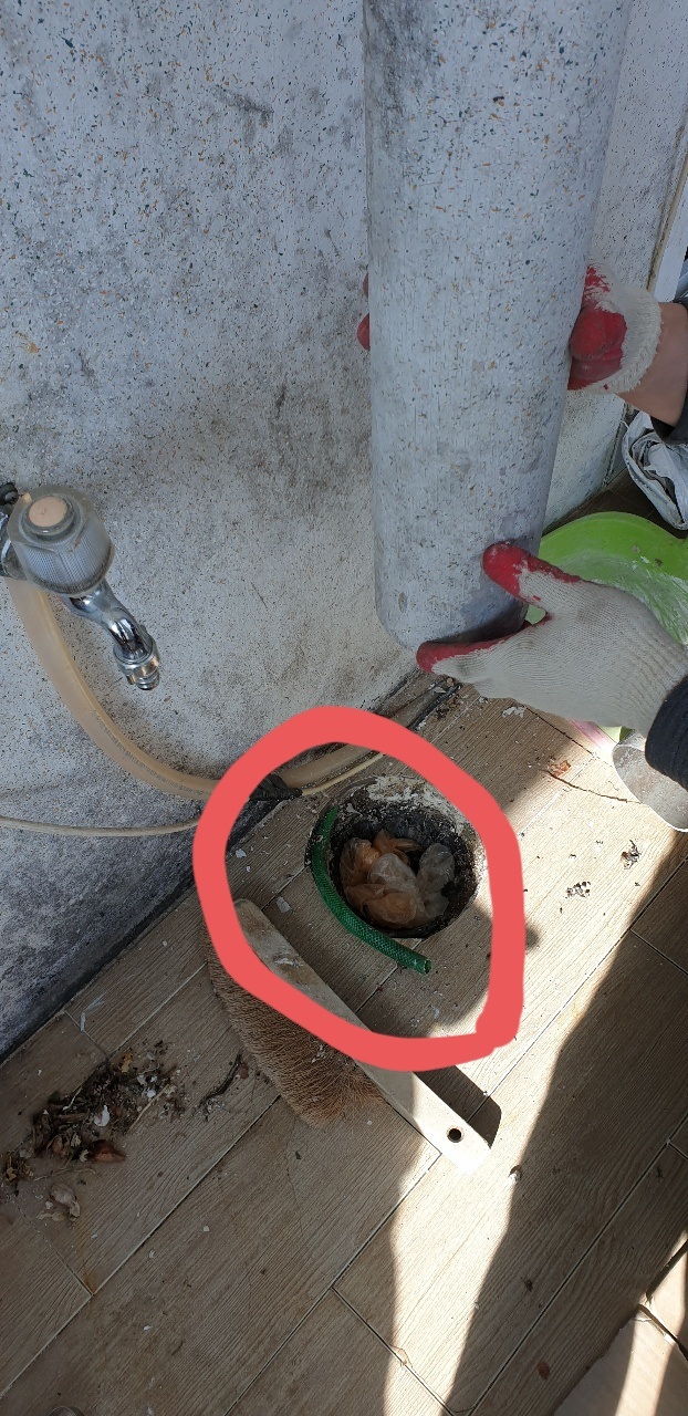 물이 내려갈 수 있도록 의뢰인과 상의 후 우수관에 구멍을 뚫어주고..