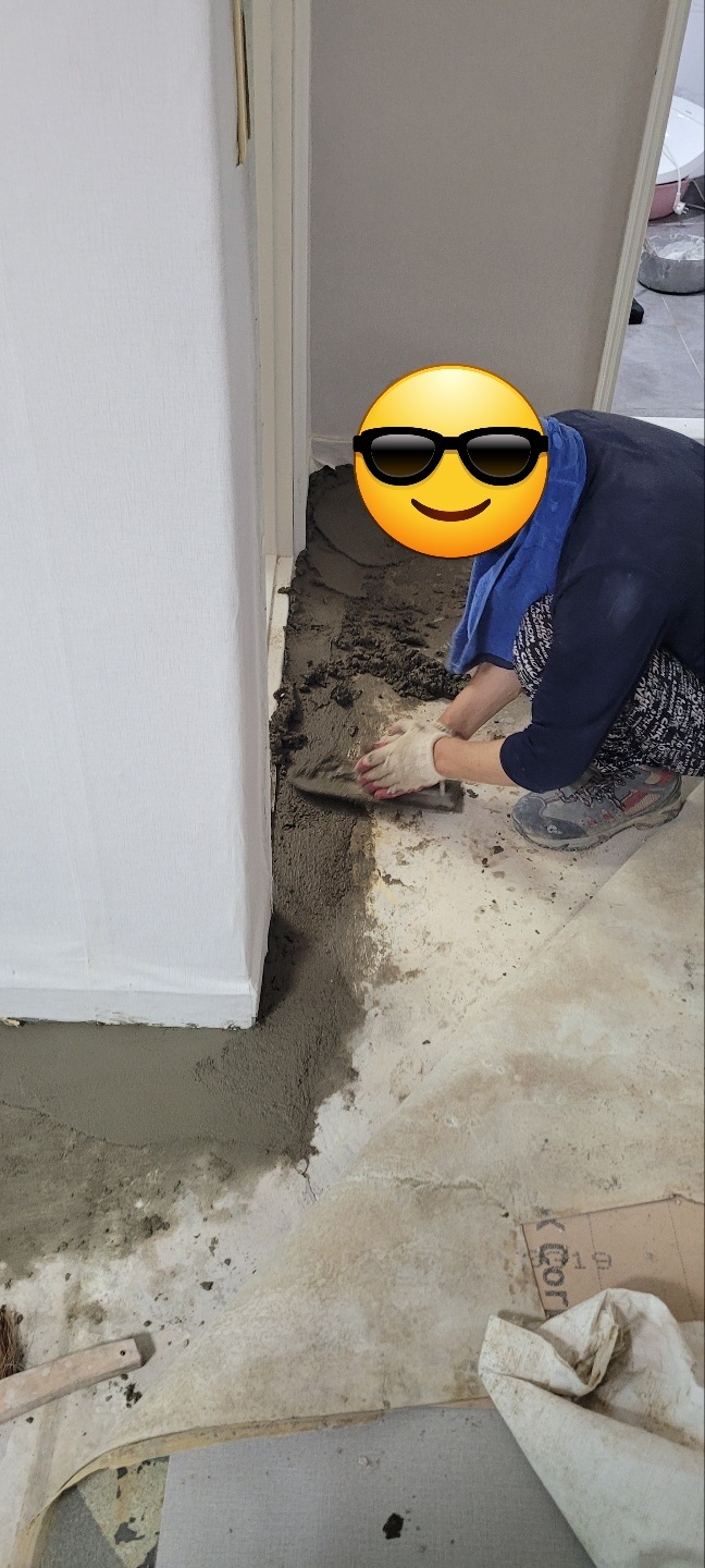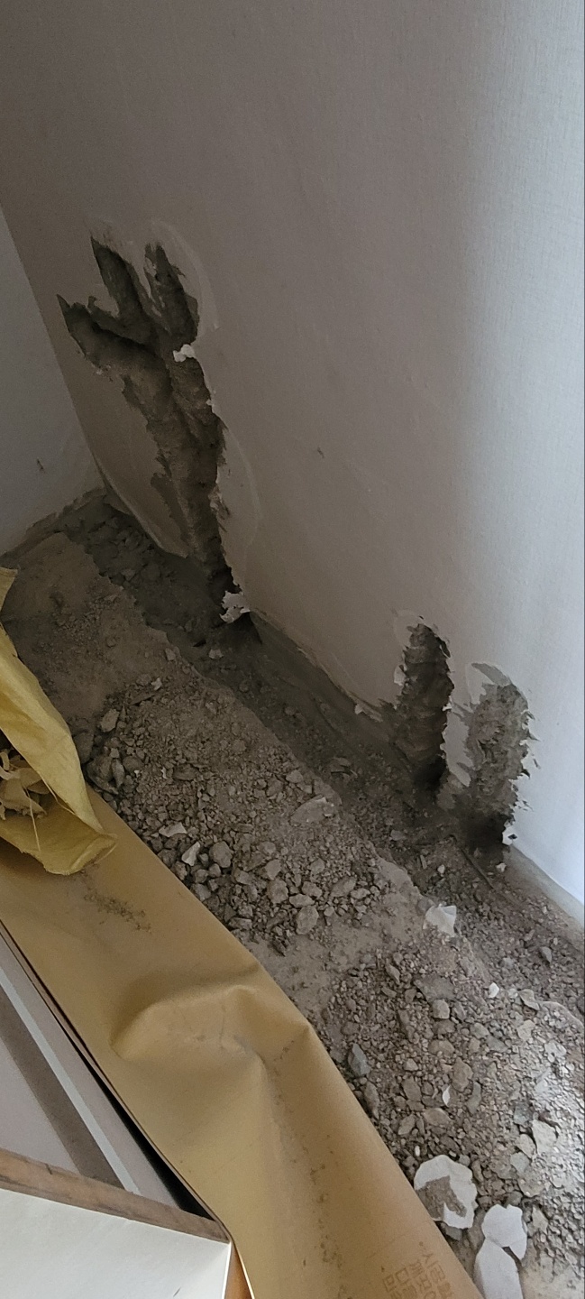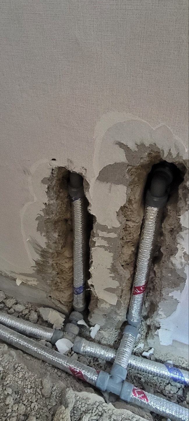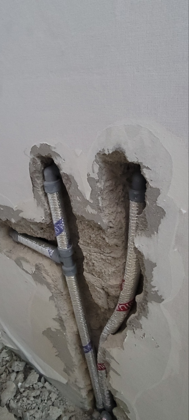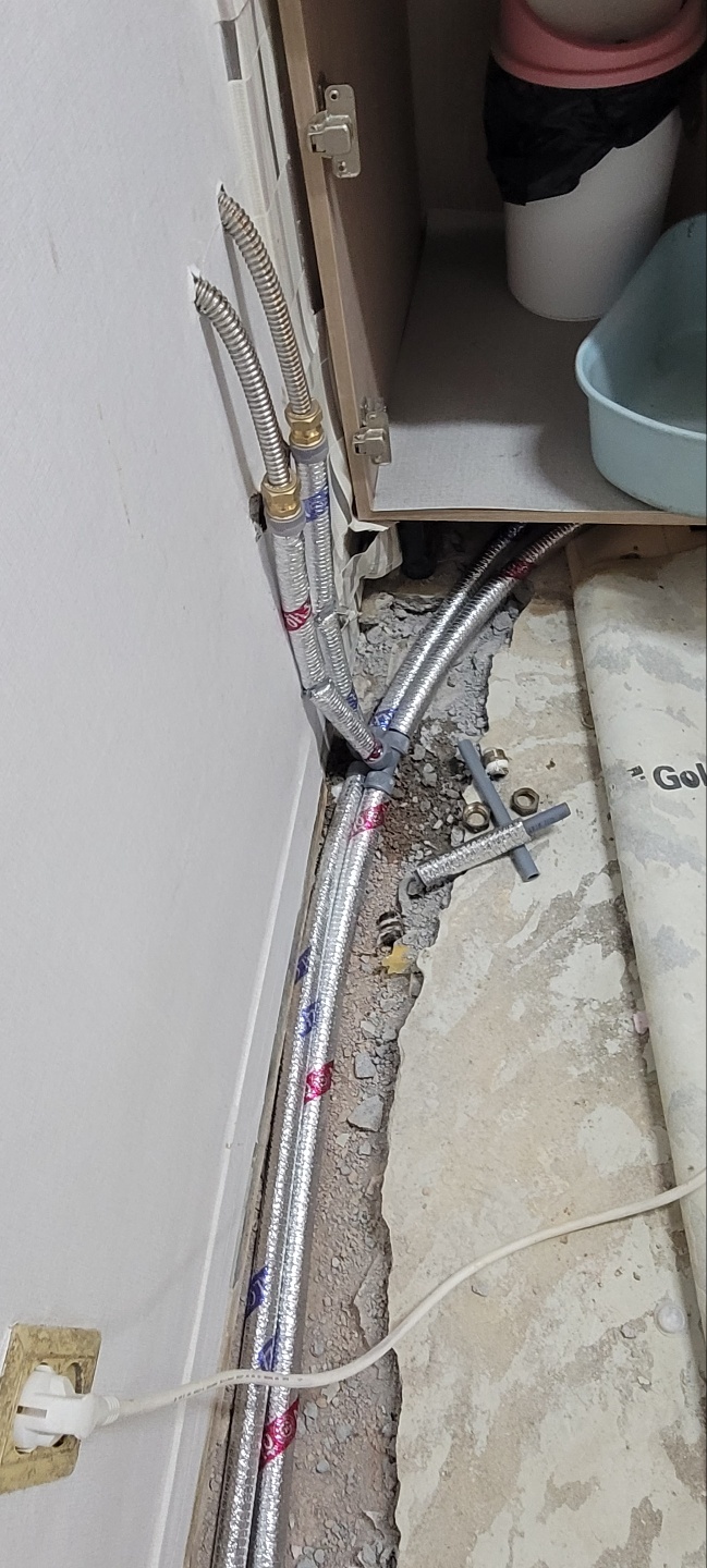 수도배관을 새로운 배관으로 교체하고, 다시 가장자리부분을 덮어주고 미장을 합니다.