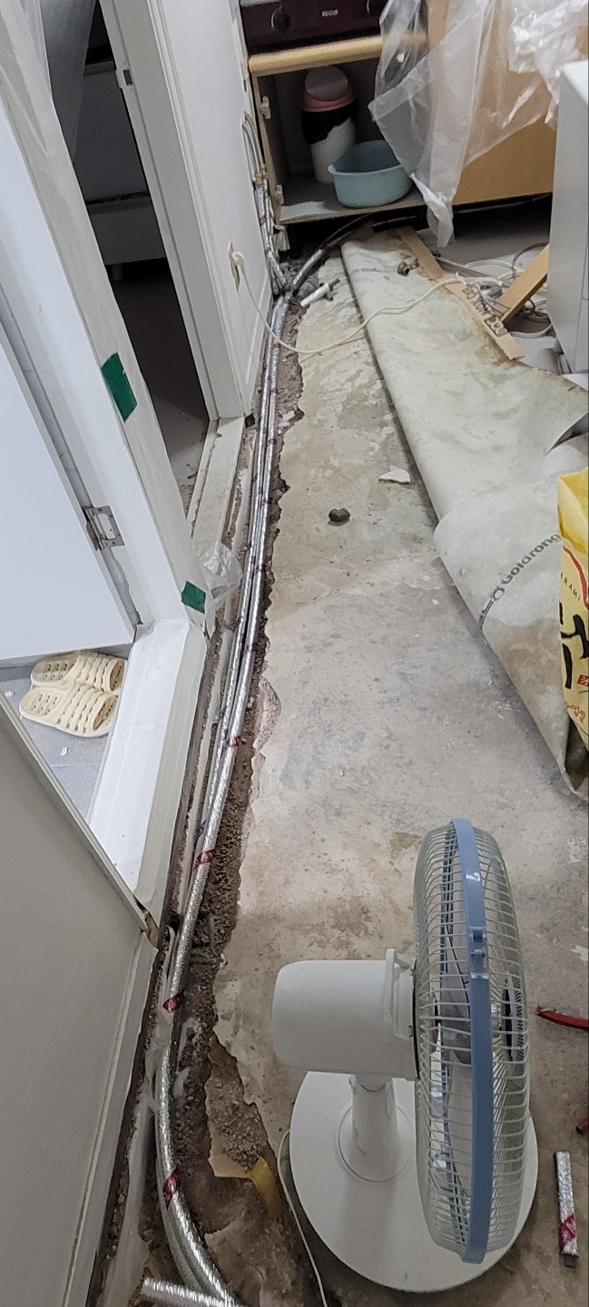 베란다(세탁실)→ 화장실→ 주방싱크대 순으로 배관을 깔았습니다.