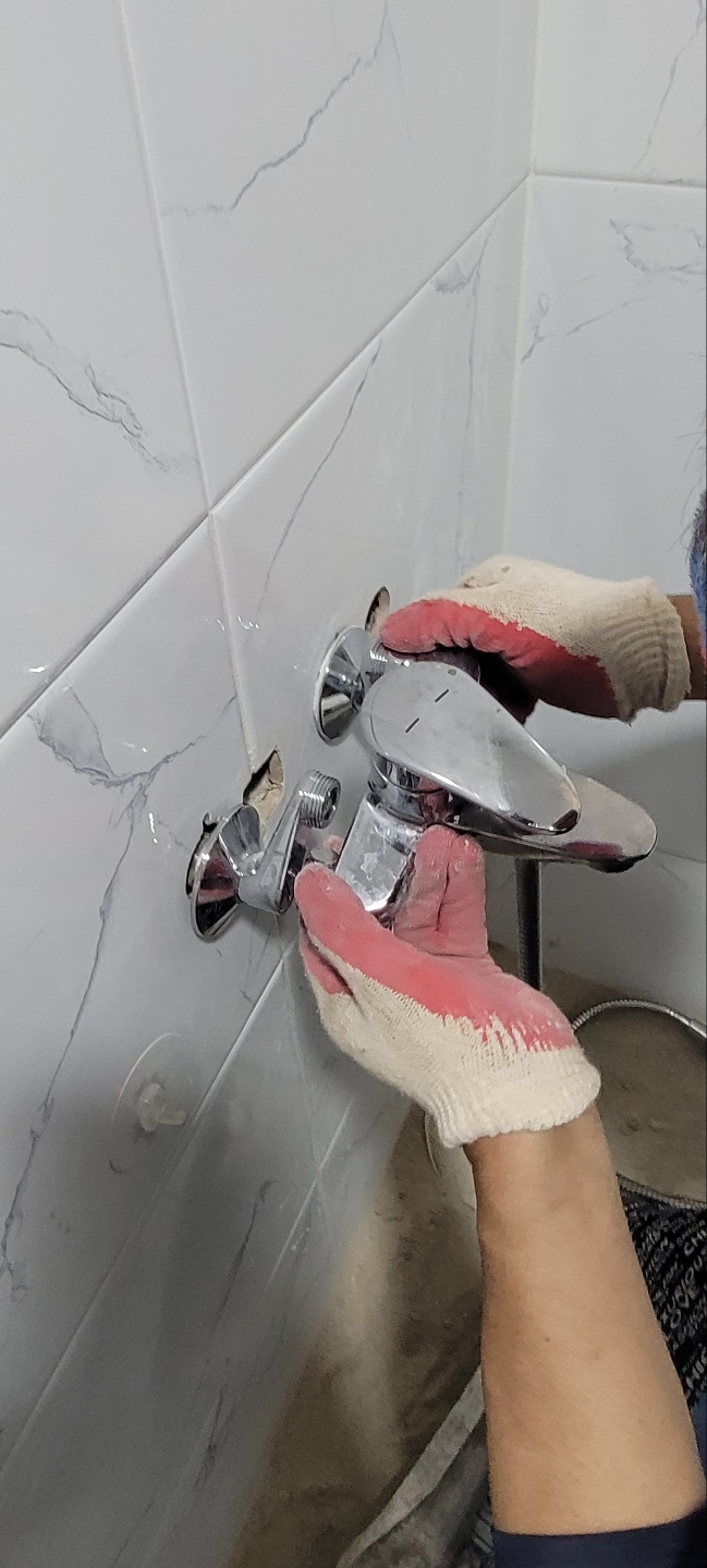 샤워기수전을 설치하고..