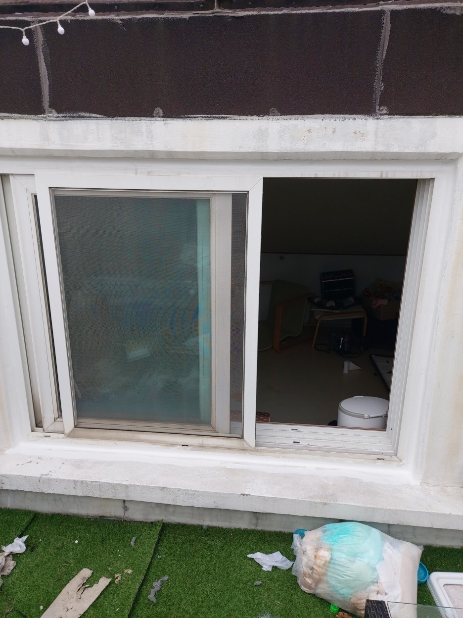 창틀의 일부분만 작업을 하지않고.. 전체적으로 실리콘을 굵게 쏴주고 작업 마무리합니다.