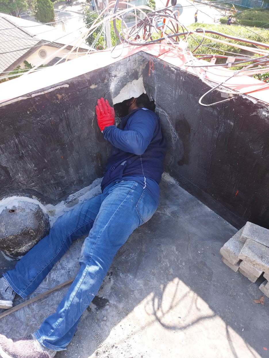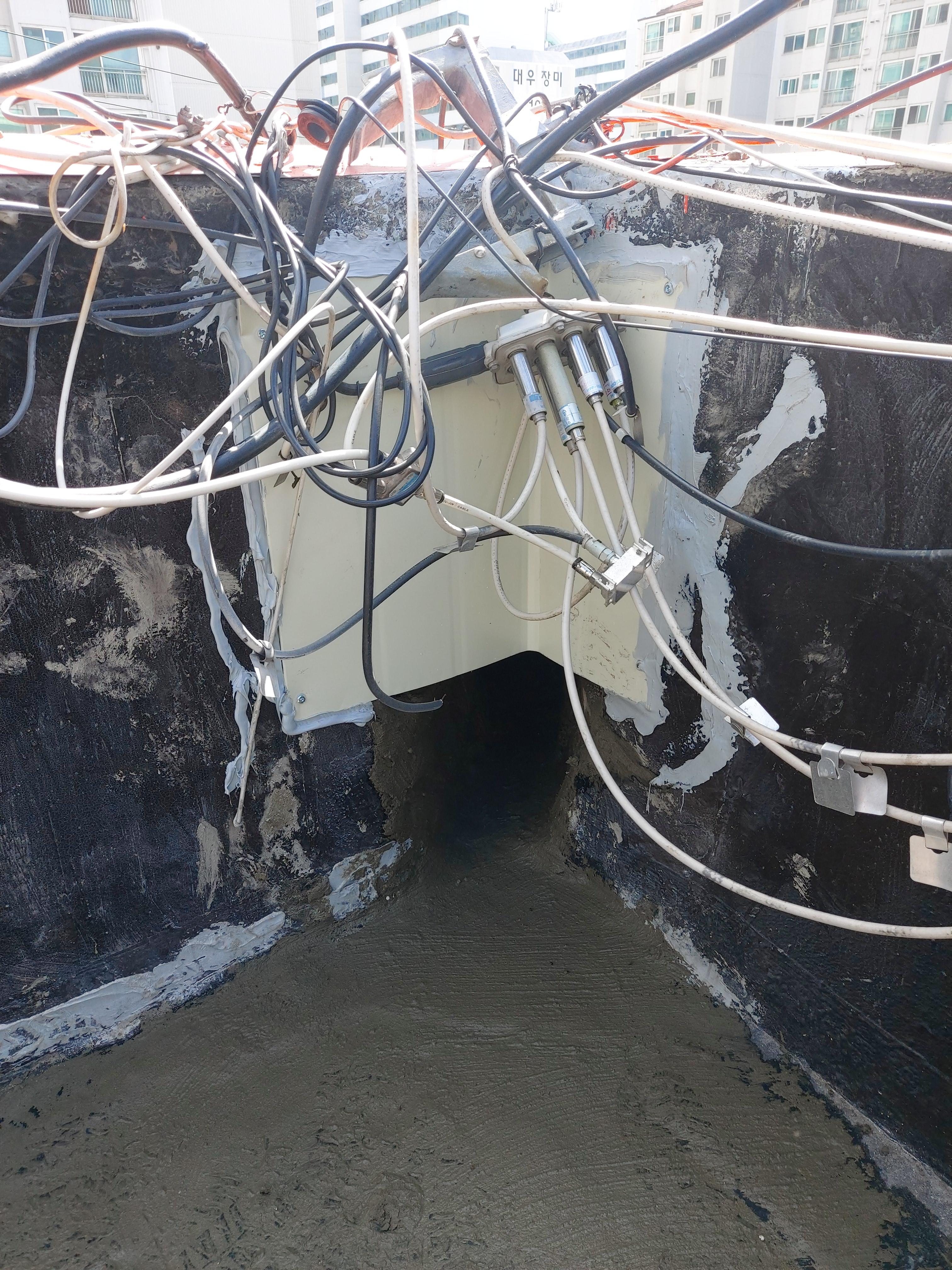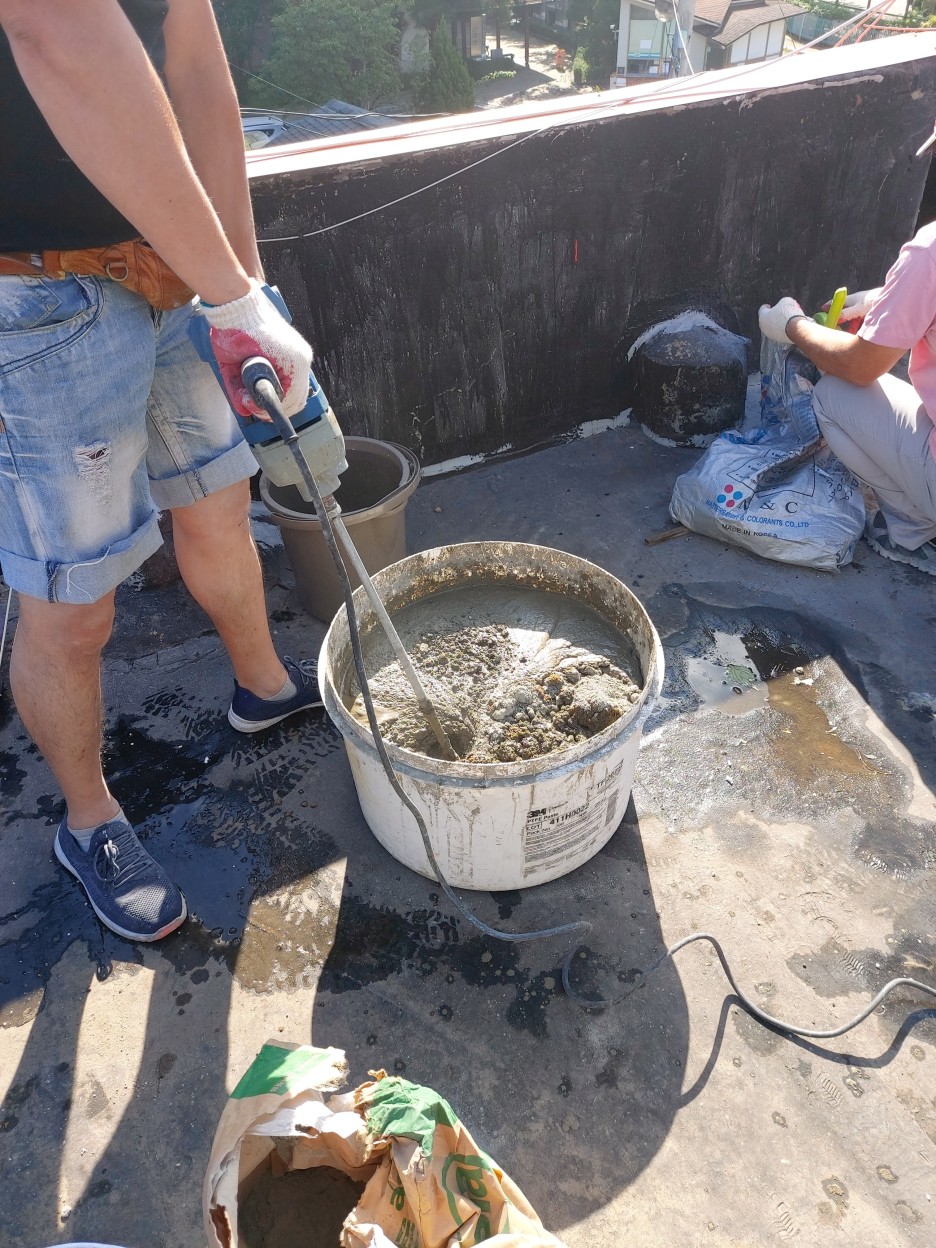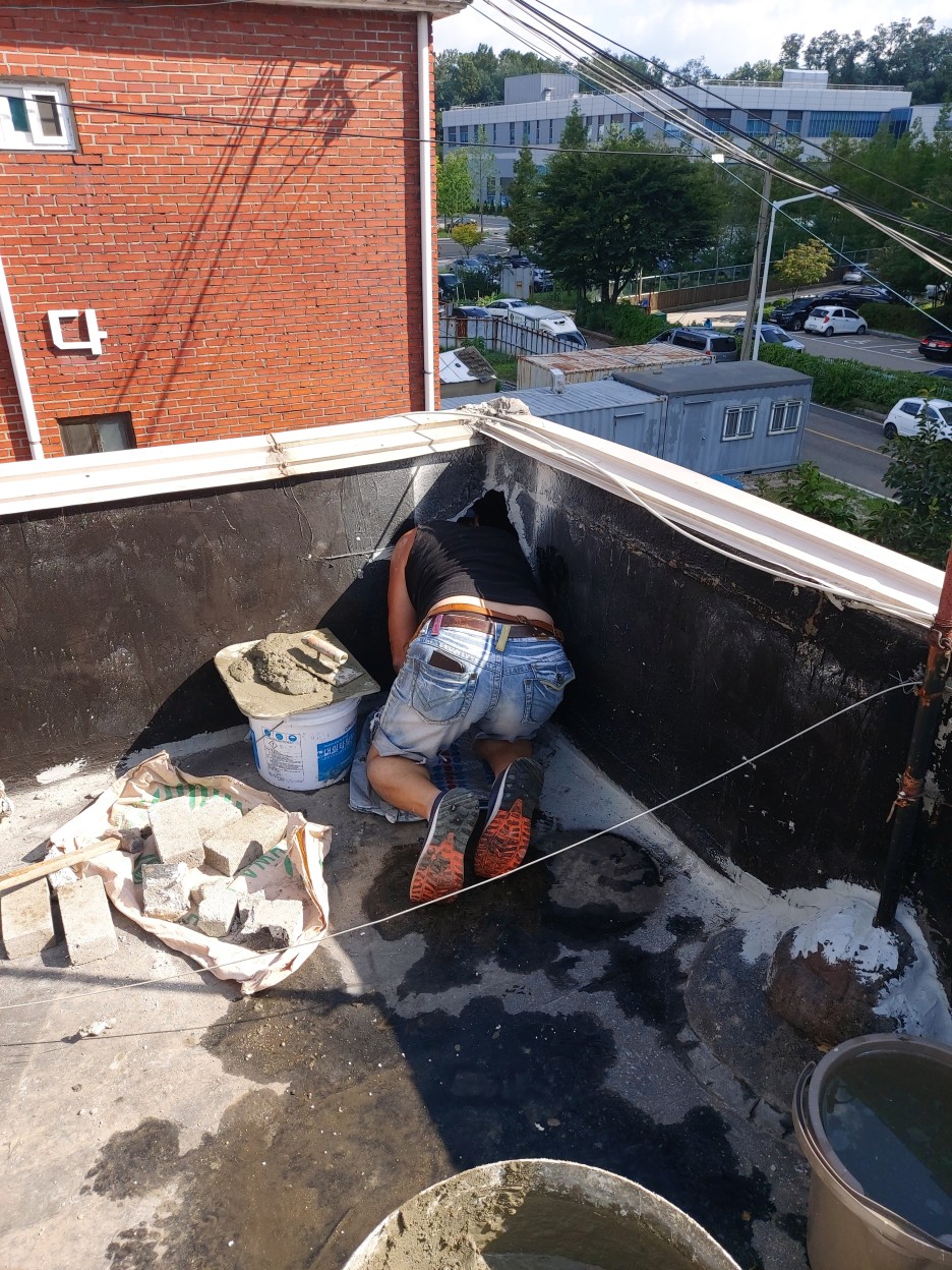 태풍이 오기 전 의왕시 부곡동의 빌라 옥상에서 우수관 배수로 방수 공사작업을 했습니다.