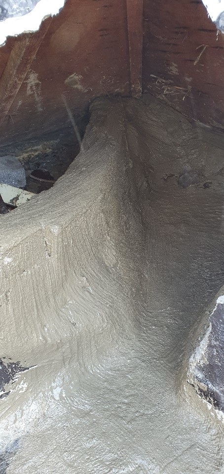 좌,우측 우수관 배수로에 몸을 구겨넣어서(?) 작업을 하고 있습니다.