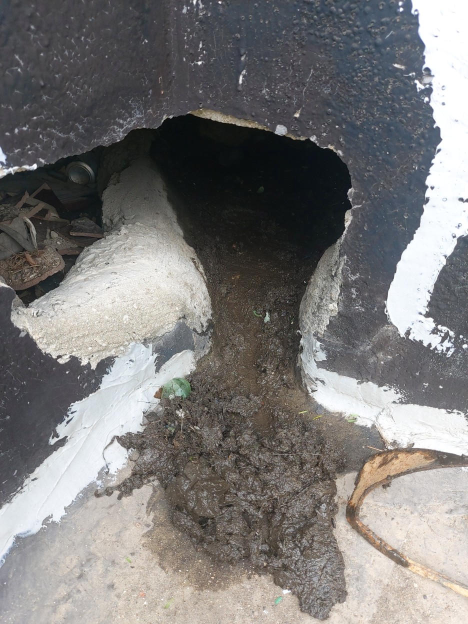 우수관으로 빗물이 잘 안빠져서 배수로 좌우벽을 넘어 누수가 발생할 가능성이 커보입니다.
