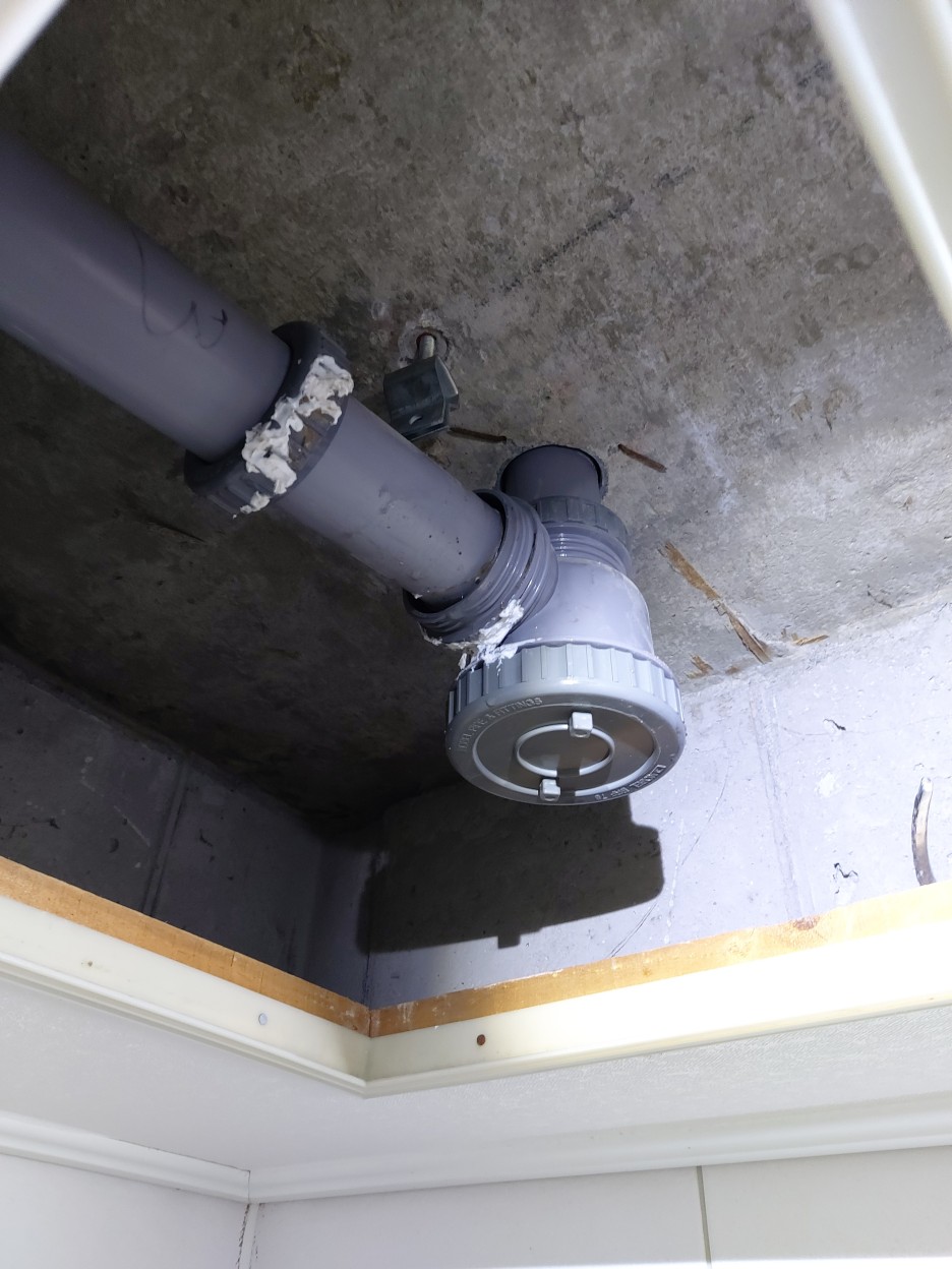 윗집 욕실의 욕조 하수구배관에서 물이 샙니다.
