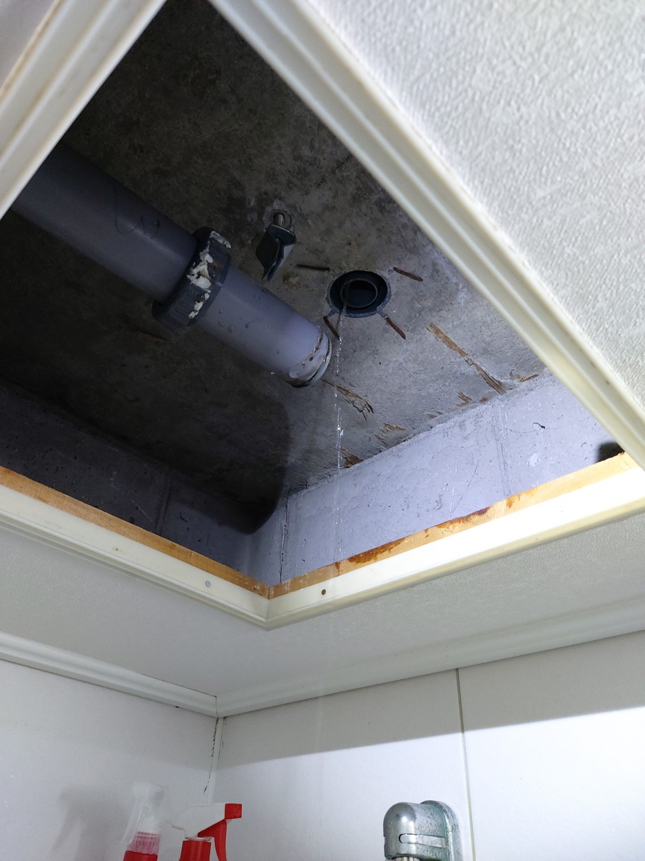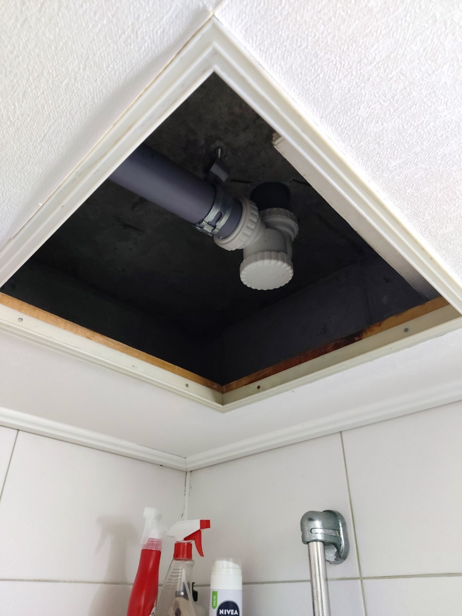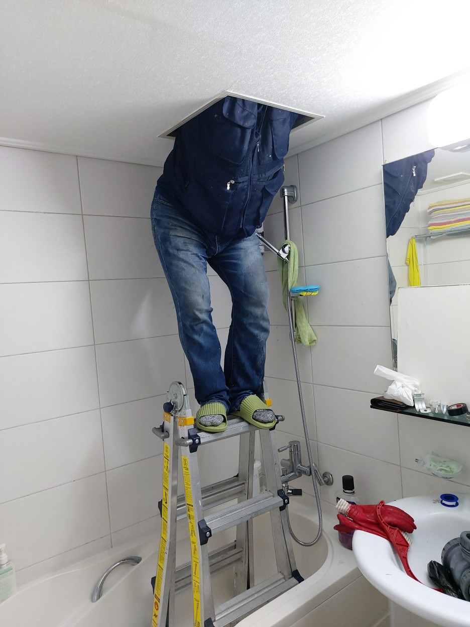 아래집 화장실에서는 천장 점검구를 열어, 어느쪽배관에서 물이 새는지 확인을 합니다.