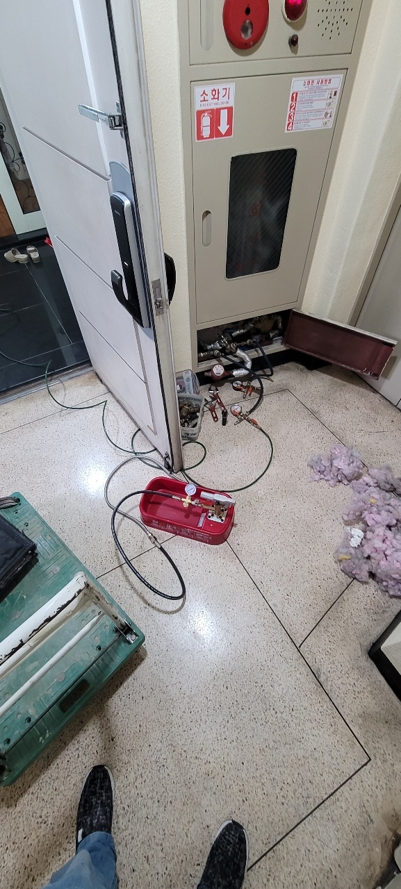 안양시 동안구 호계동 목련 7단지 아파트에서 누수가 된다는 연락을 받고 출동합니다.
