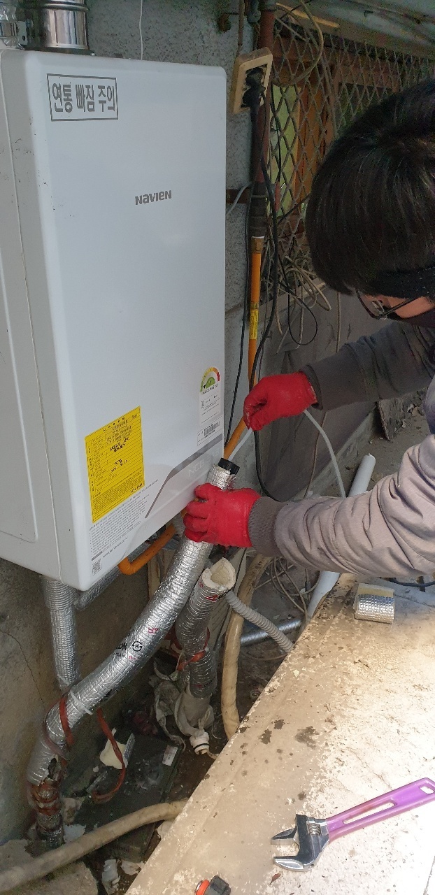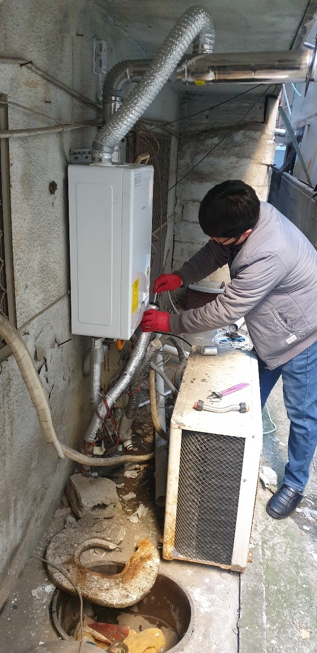 현장에 도착을 해서 보니.. 보일러가 외부에 설치가 되어 있어서 수도가 얼었네요..에공..ㅠ
