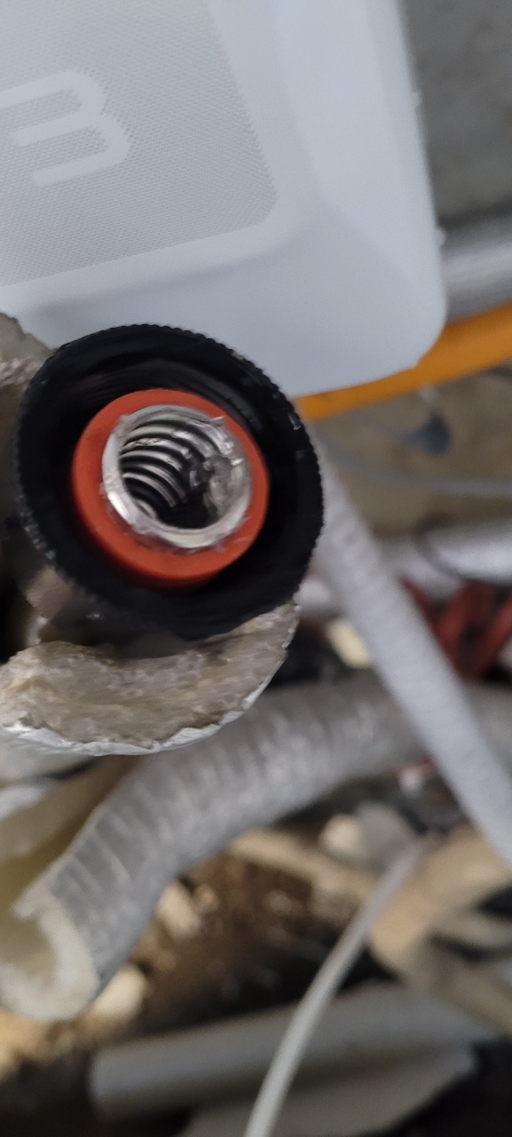 직수배관을 빼서 보니 배관 안쪽이 얼어있습니다.