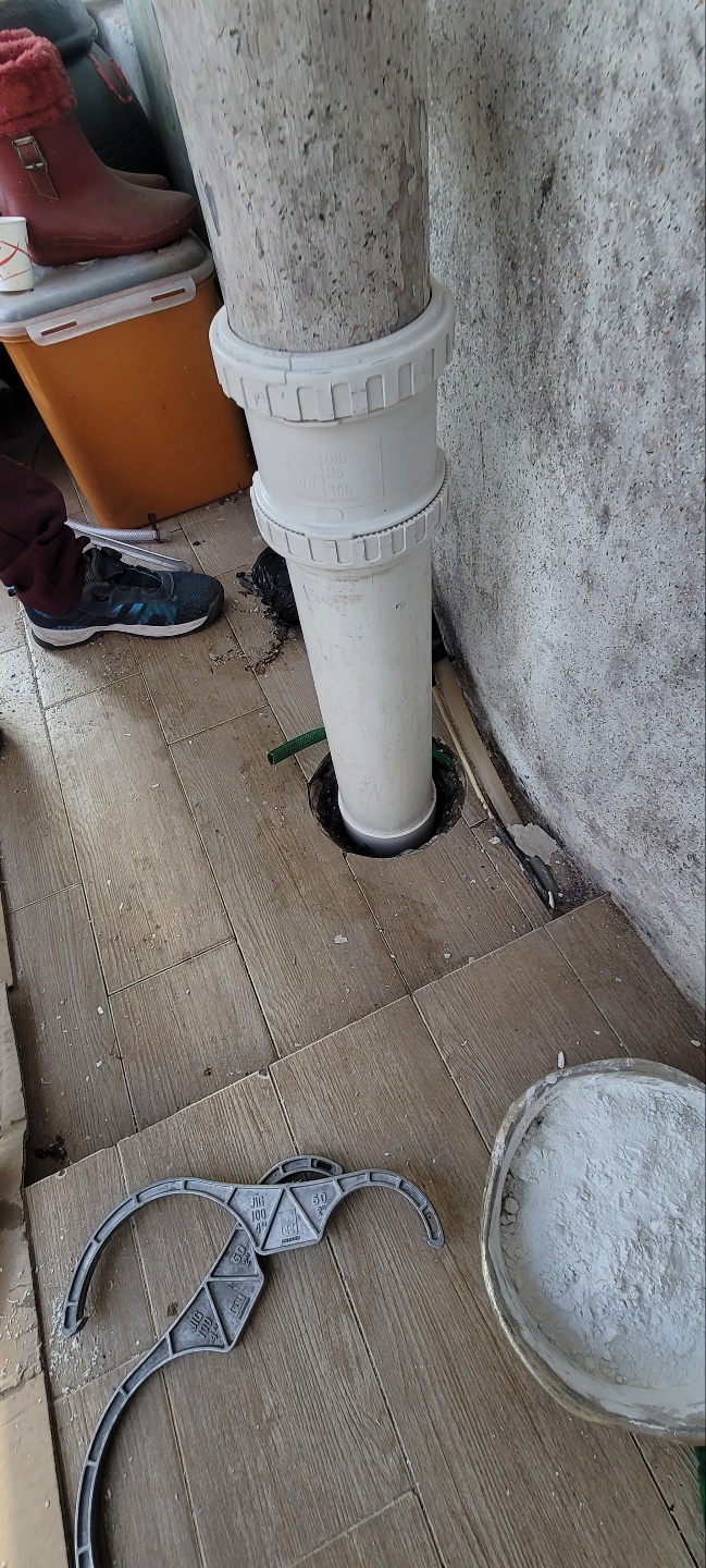 군포시 금정동의 아파트에서 베란다 우수관에서 누수가 된다는 연락을 받고 출동합니다.