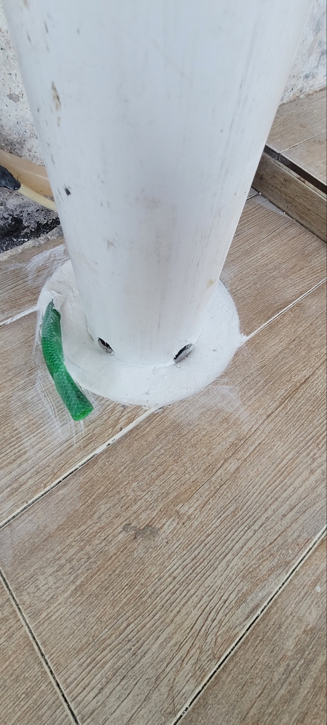 물이 내려갈 수 있도록 의뢰인과 상의 후 우수관에 구멍을 뚫어주고..