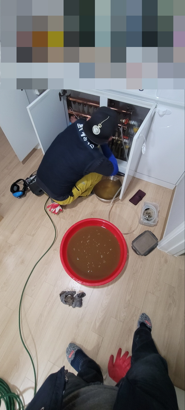 (여느 집들과 마찬가지로 난방배관속의 물은 탁하네요.ㅠ)