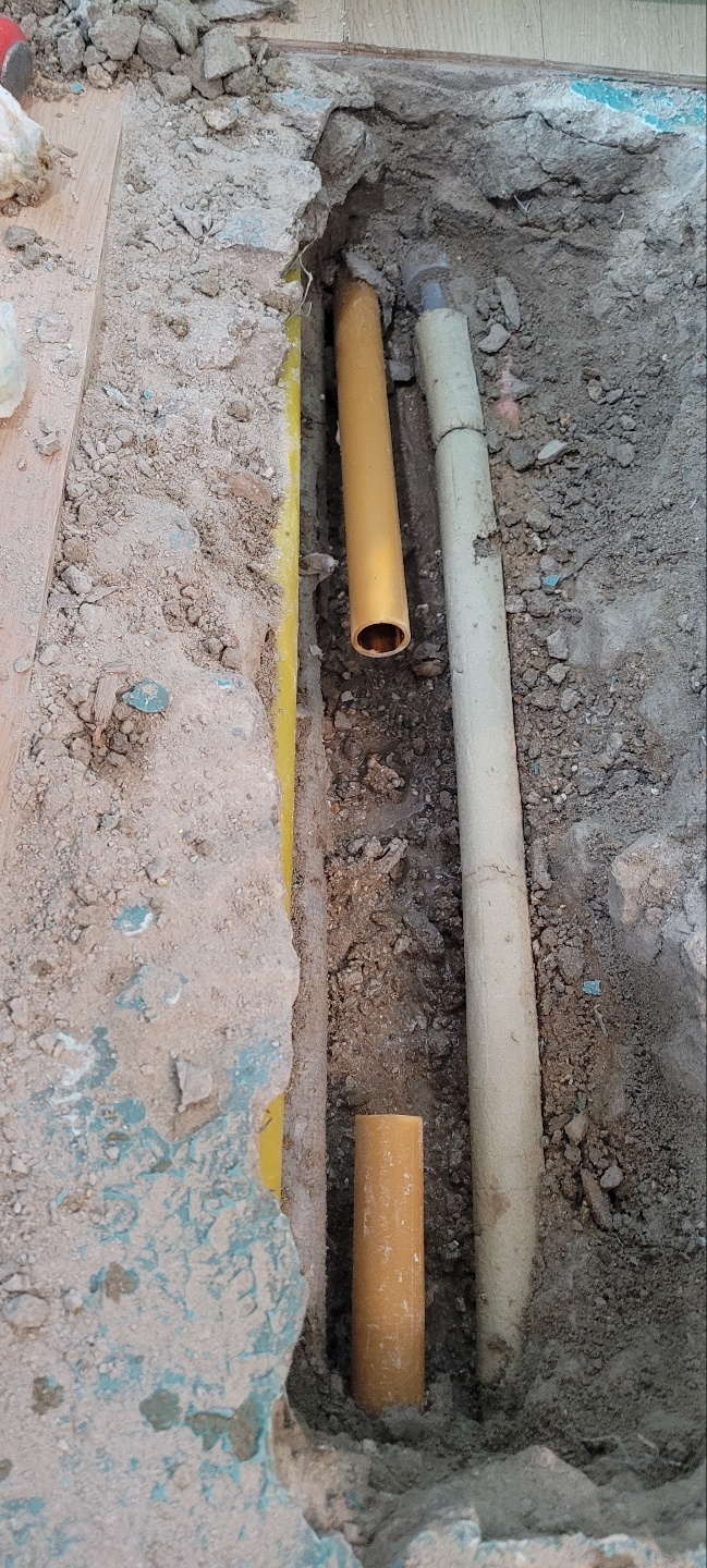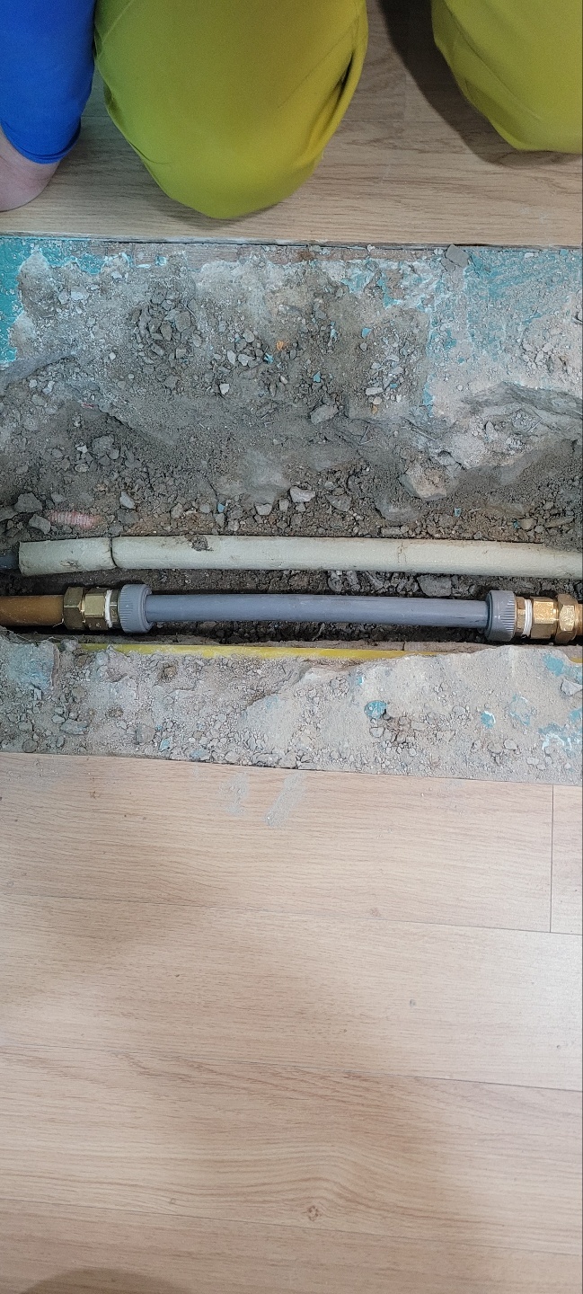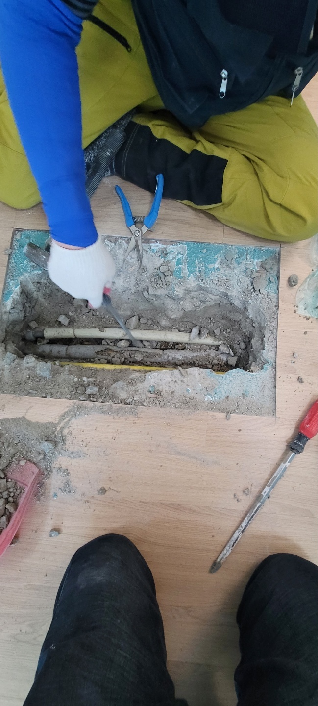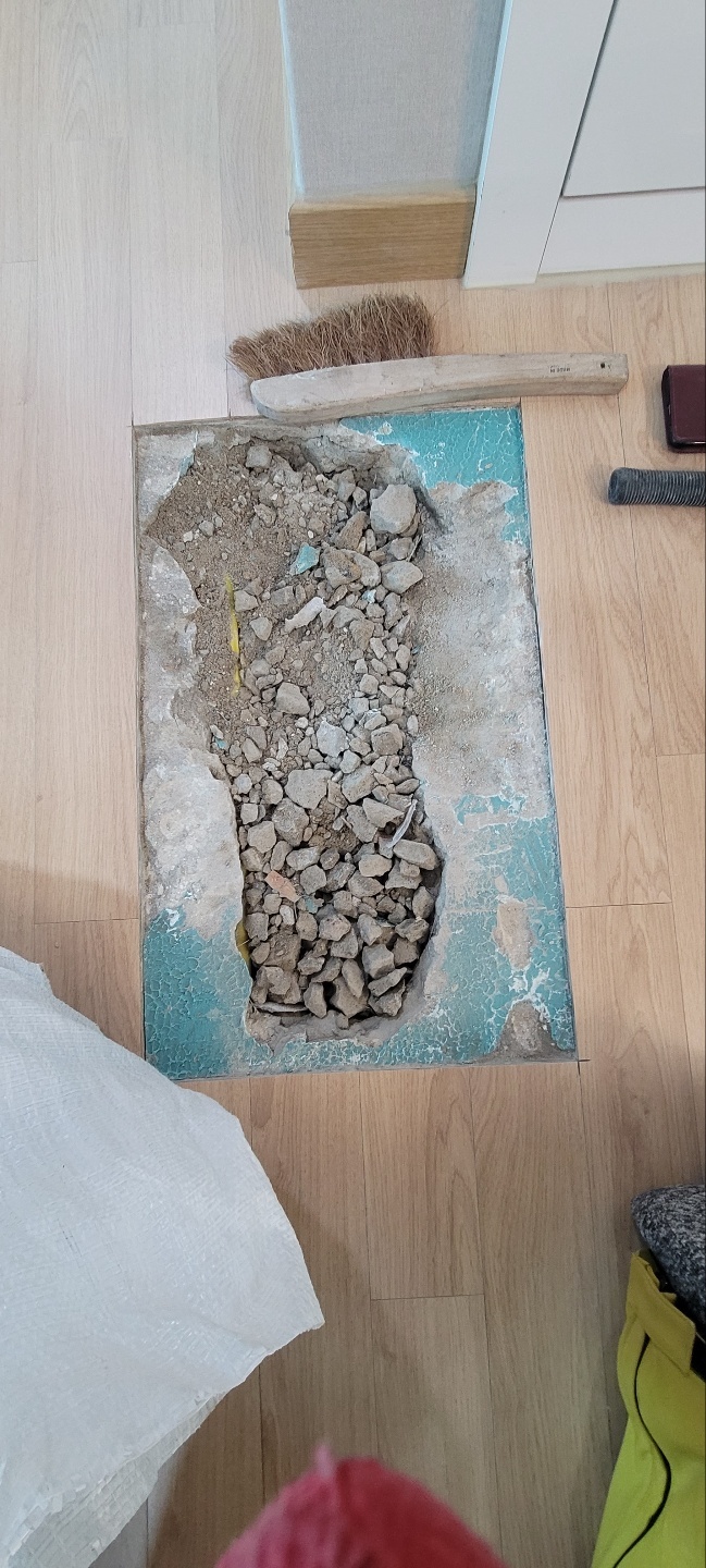 누수탐지결과 누수의심 부분을 깨고.. 배관을 찾습니다.