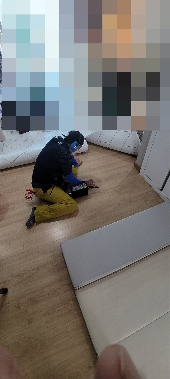 난방배관의 물을 다 빼고 탐지기로 누수탐지를 합니다.