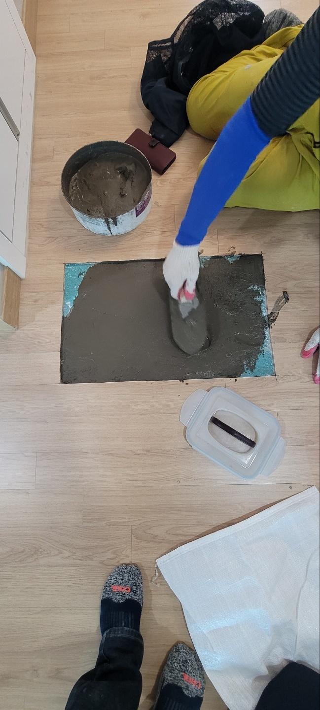 작업을 위해 깼던 부분을 미장하고 작업을 마무리합니다.