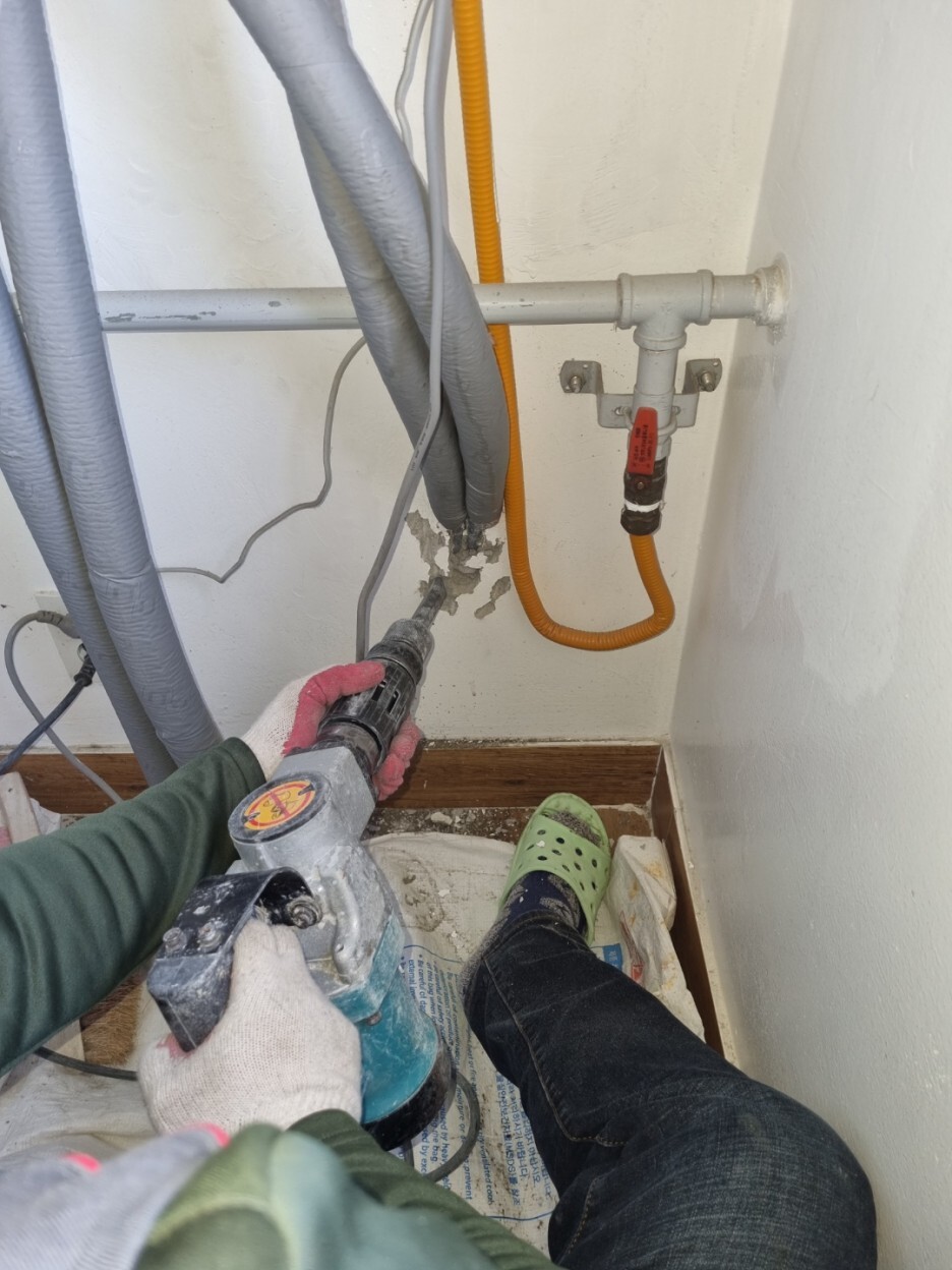 누수탐지를 했는데.. 보일러 바로 밑의 수도배관에서 누수의심이 돼서..